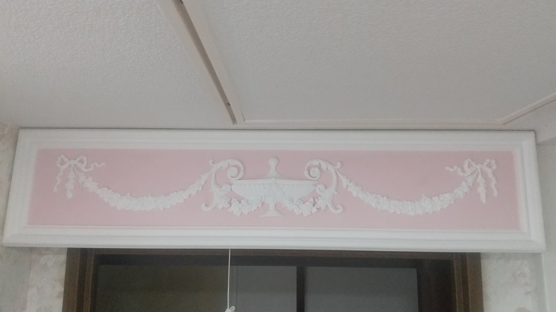 余りにも白いので今度は薄いピンク色の壁紙でやりましたが、突出感が否めず却下になり再び最初の壁紙でやり直しました。